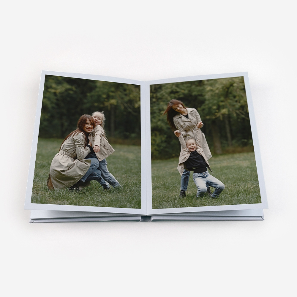 Os Álbuns de Fotos Dreambooks apresentam uma abertura panorâmica, com a possibilidade de colocar uma foto em destaque ocupando duas páginas. Desta forma, desfrutarás de uma visualização perfeita das tuas fotos, sem cortes ou partes escondidas.