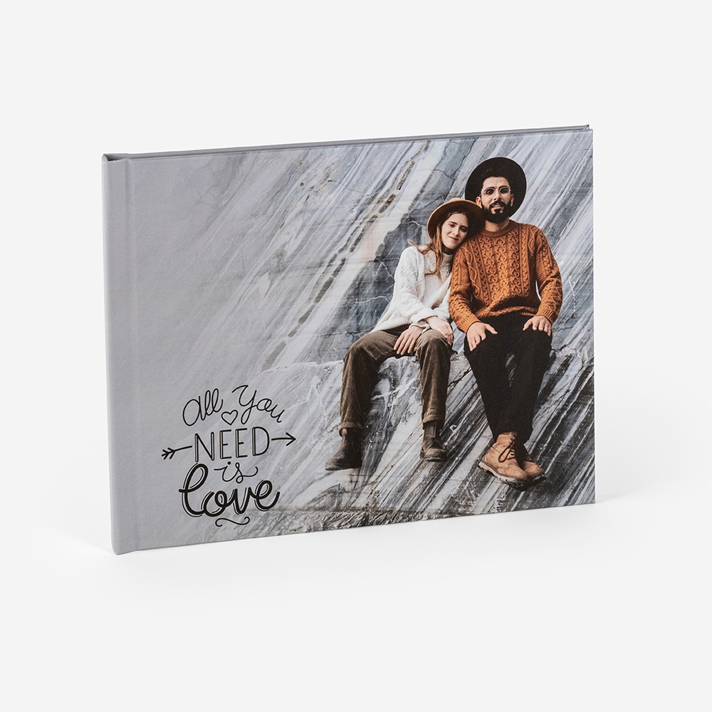 Álbum de cartão resistente, com folhas em branco.