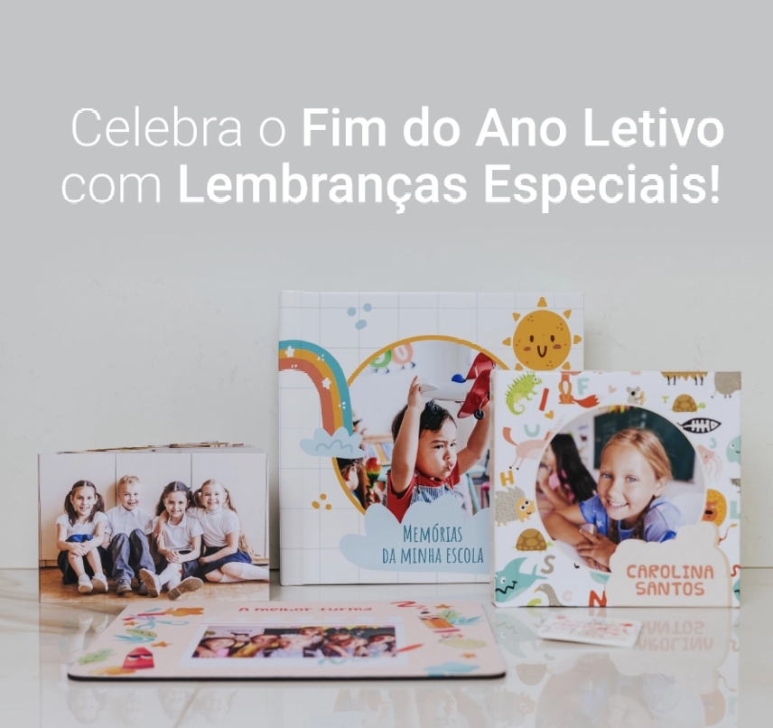 Produtos como álbuns de finalista, porta-chaves personalizados, fitas dos finalistas ou pequenas recordações com fotografia infantil tornam-se memórias intemporais. É essencial recordar estes momentos para sempre, pois uma foto de finalista, vai trazer sempre uma enorme nostalgia da escola.