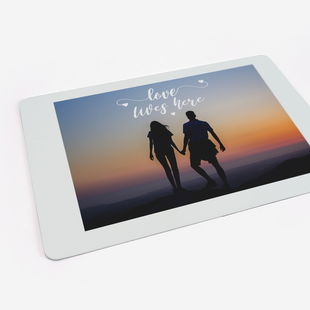Tamanho 60x40 cm com personalização parcial num dos lados.